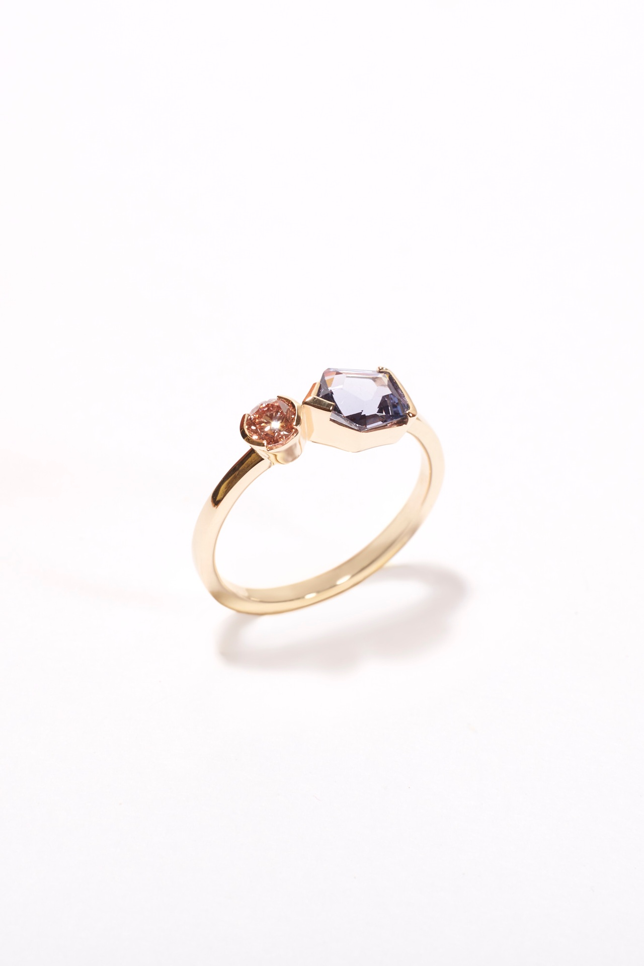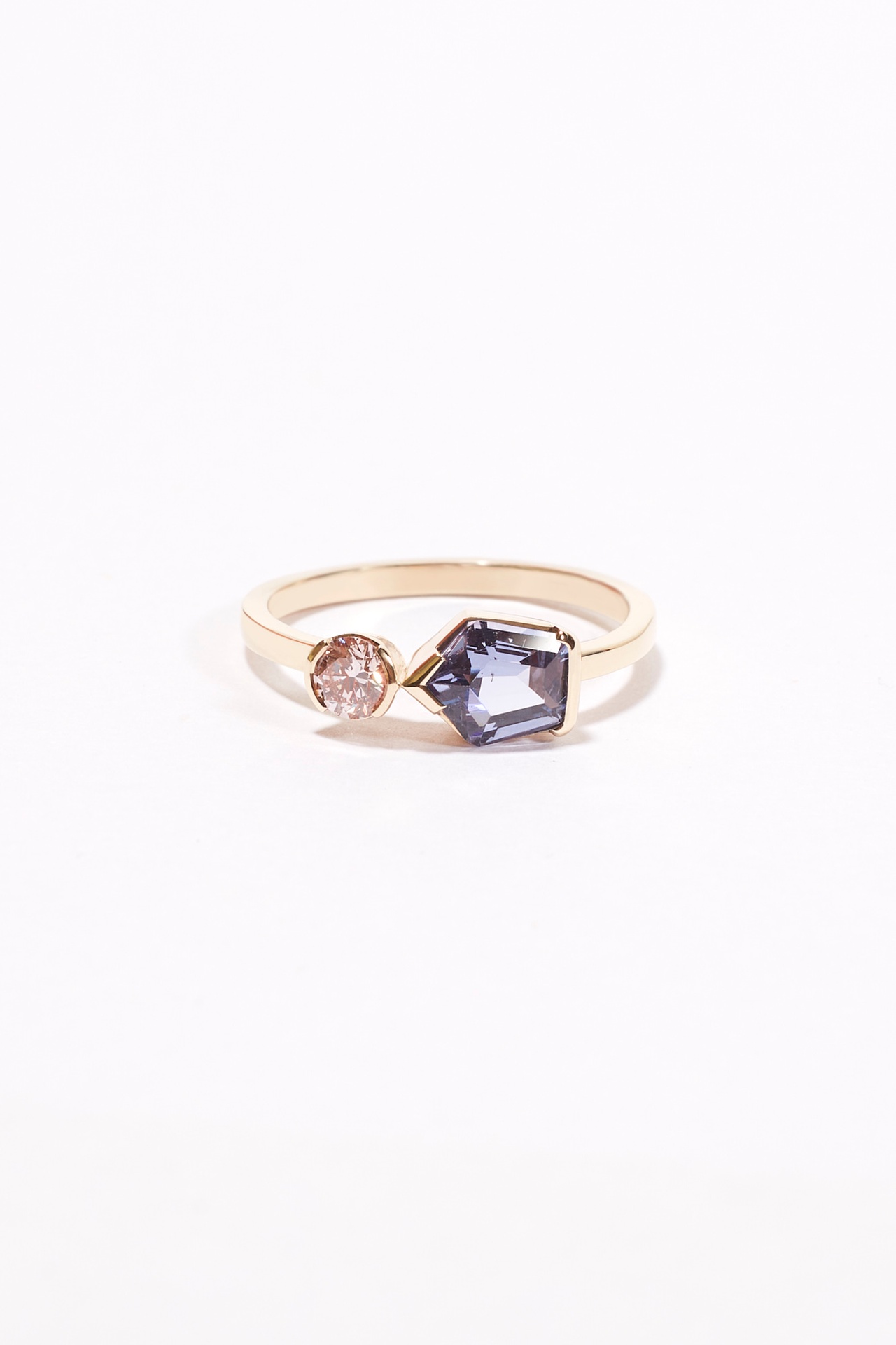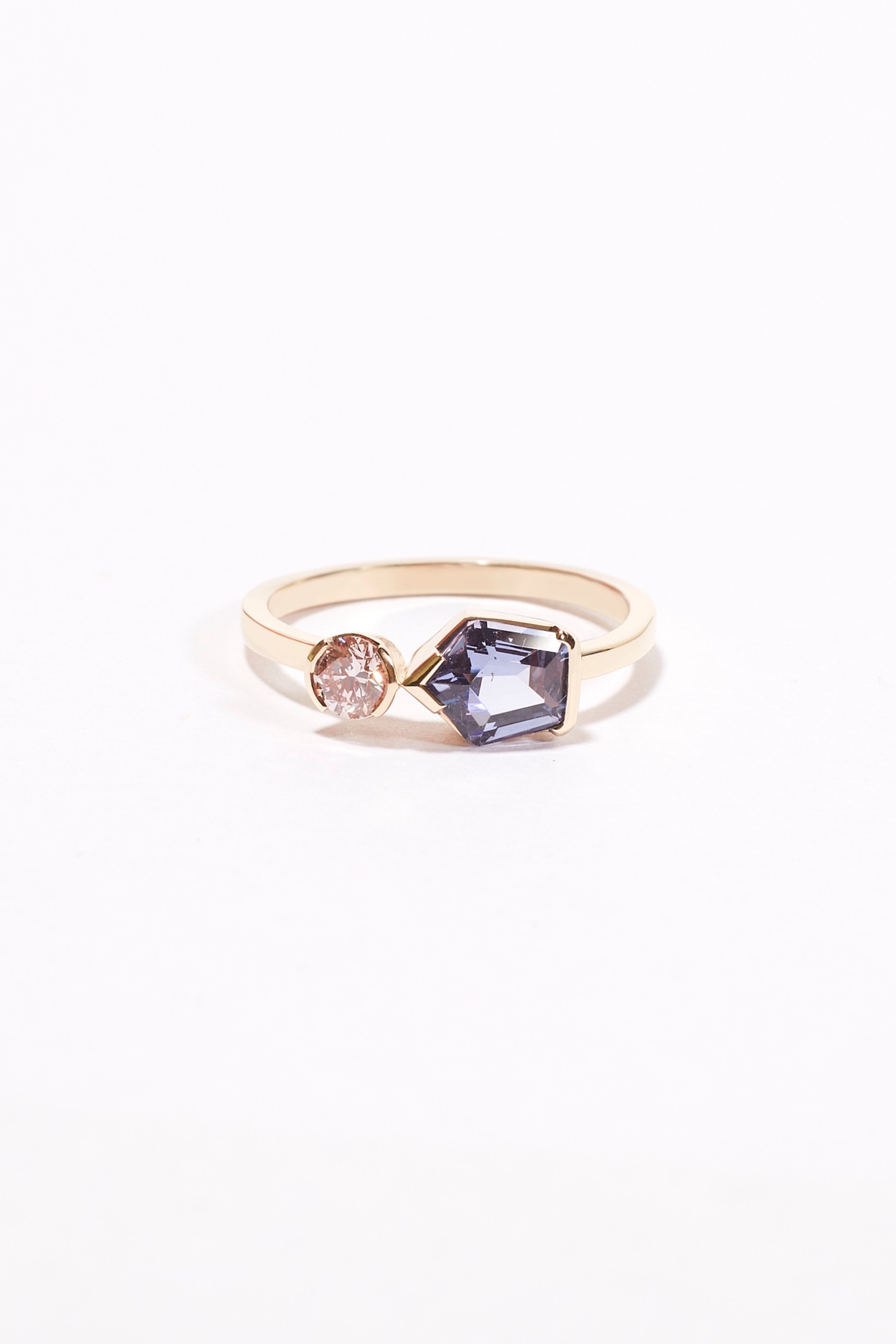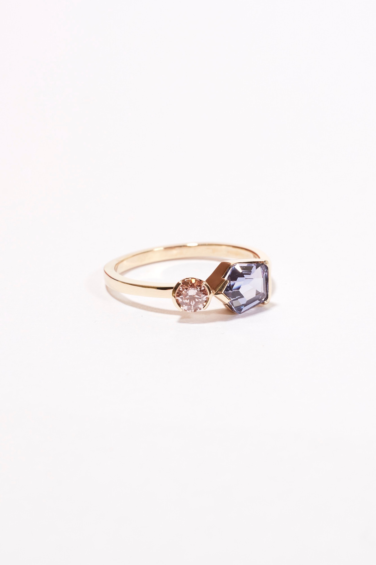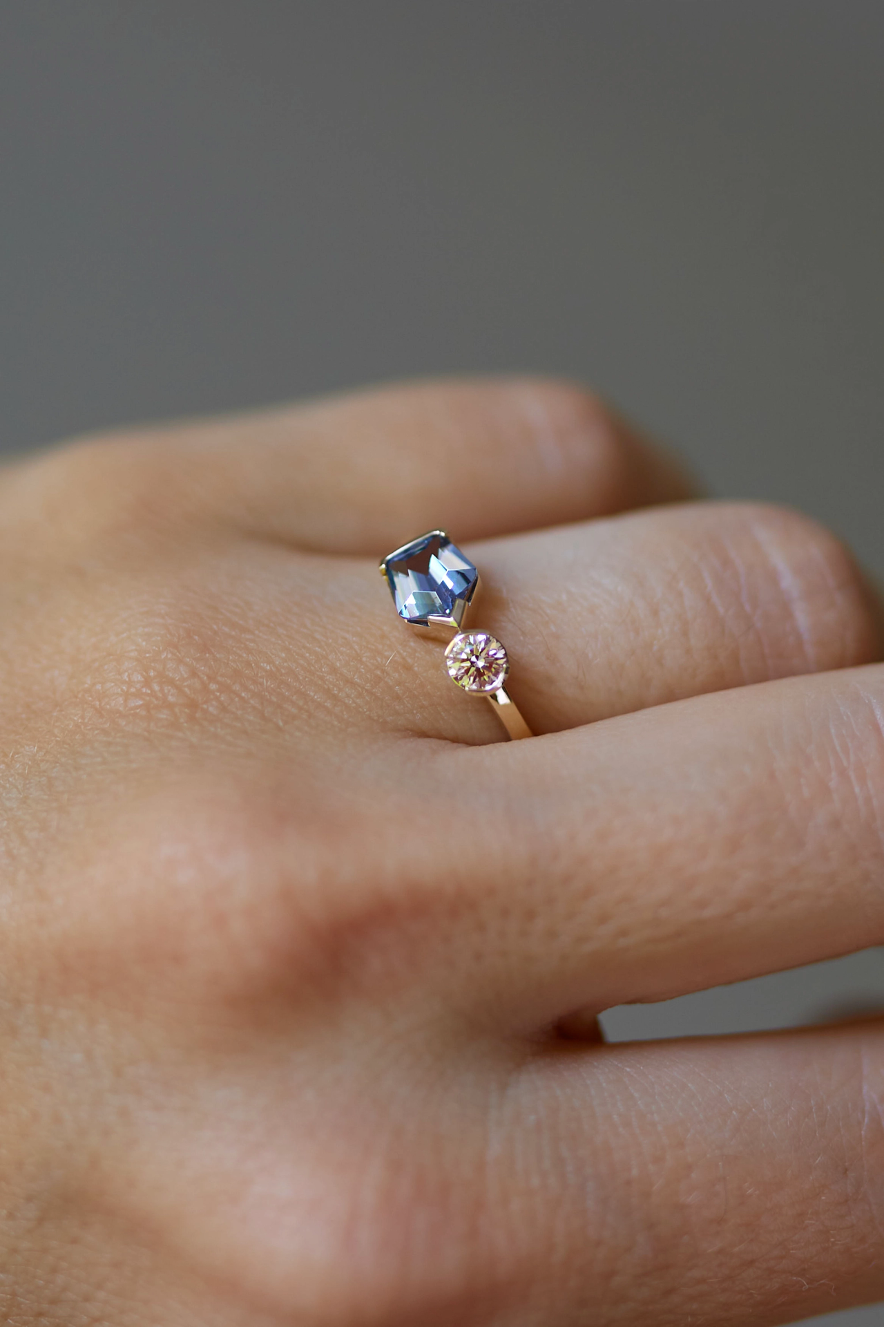 A modern twist on an engagement ring, the Arta Ring features an Australian Sapphire next to a baguette Diamond set in a 9k yellow gold band.