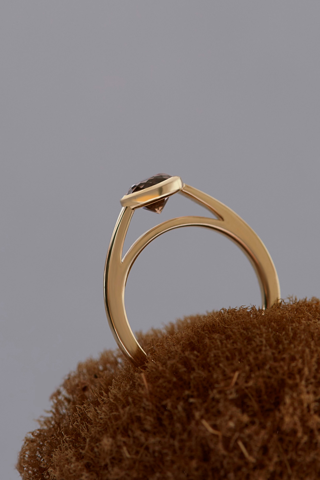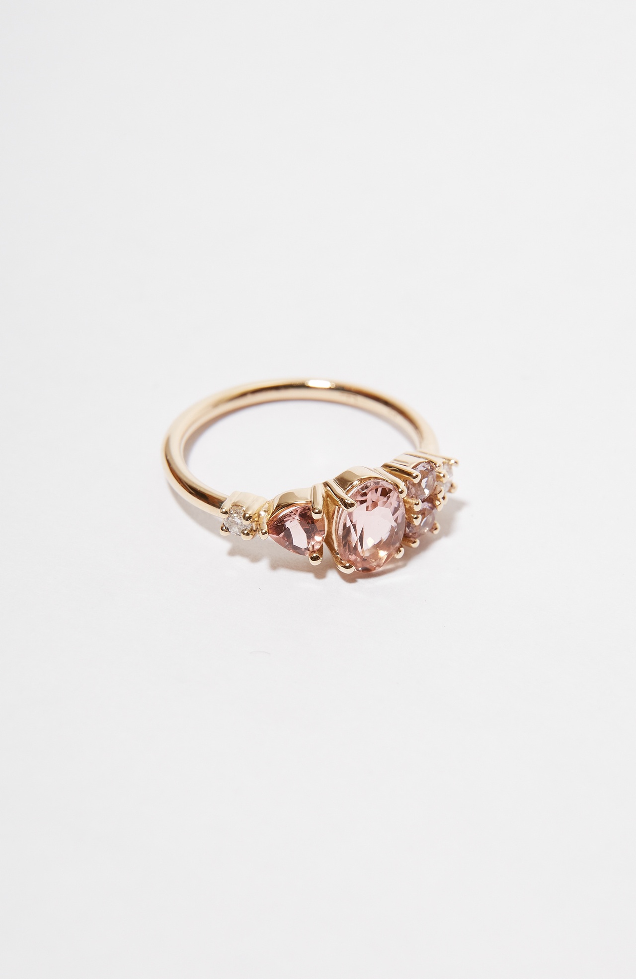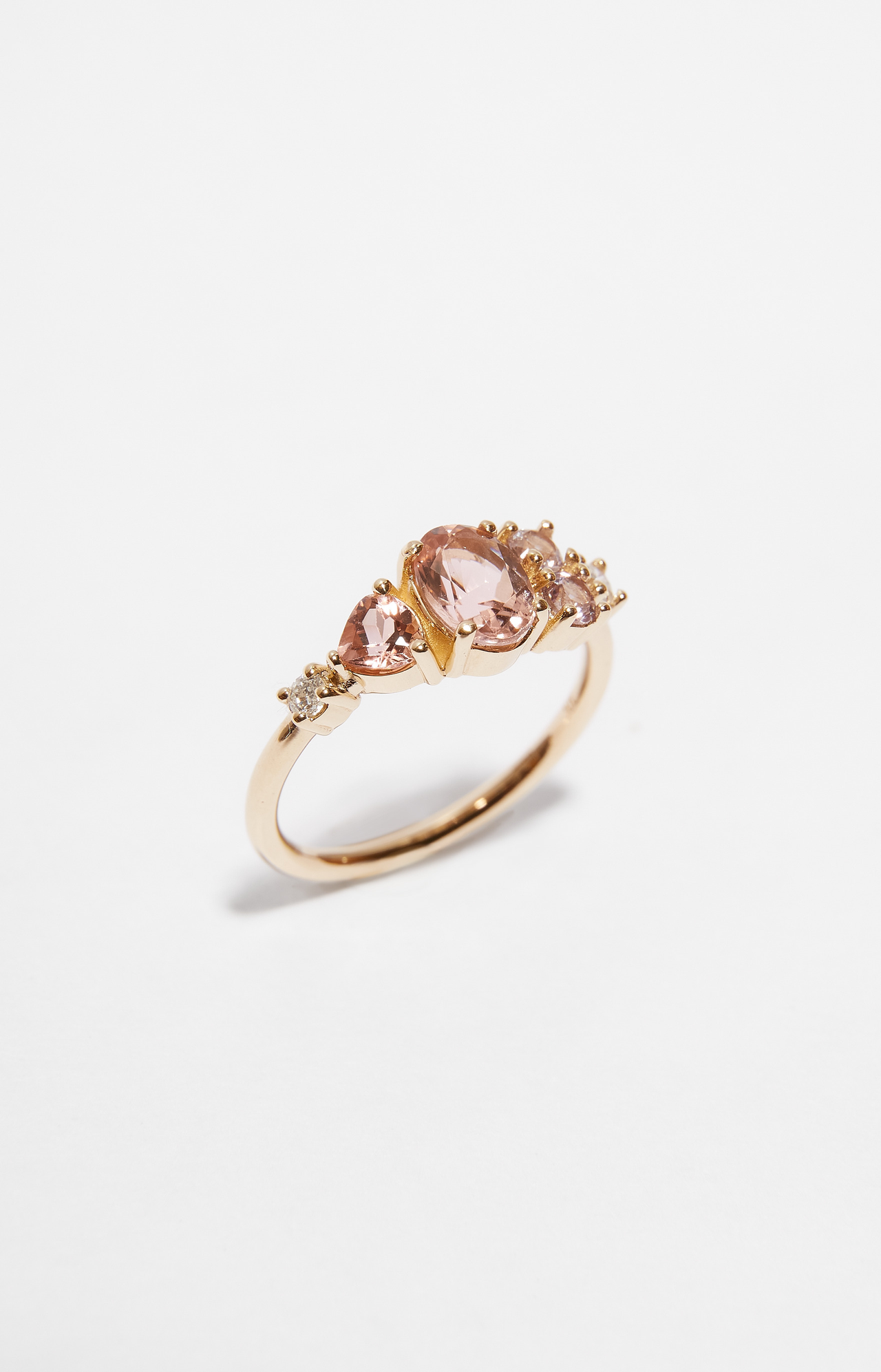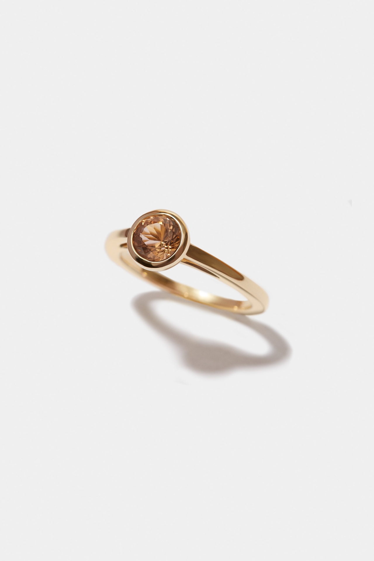 The Capri Ring features a 1ct peach tea brilliant cut Tourmaline set in full bezel and floating from the profile view.