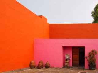 This bold and geometric 9k gold ring features two half bezel set stones inspired by the colour juxtaposition in Luis Barragan's work.