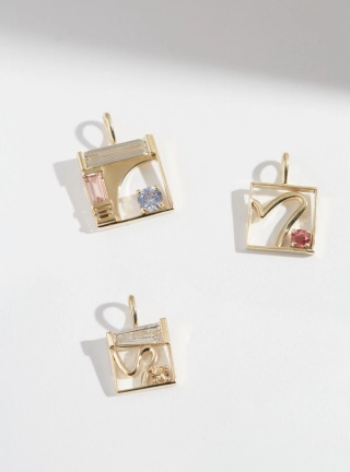 A square frame in yellow gold becomes the canvas, anchored by a tapered lab-grown baguette diamond at the top — like a single brushstroke pulling your gaze toward the round, customisable gemstone below. Shown here with a golden yellow sapphire, it’s a wearable little painting — simple, sophisticated, and entirely your own when you choose the stone.