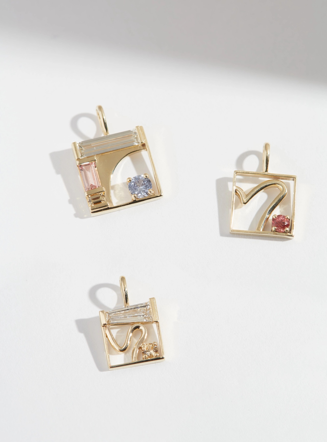 This square pendant draws from Cristina’s fine arts roots and the worlds of modernist abstraction, Wassily Kandinsky, and the De Stijl movement — where geometry meets emotion and every line has intention. The frame-like form creates space and balance, while a single clean line leads the eye to a round setting — a focal point that’s yours to define.