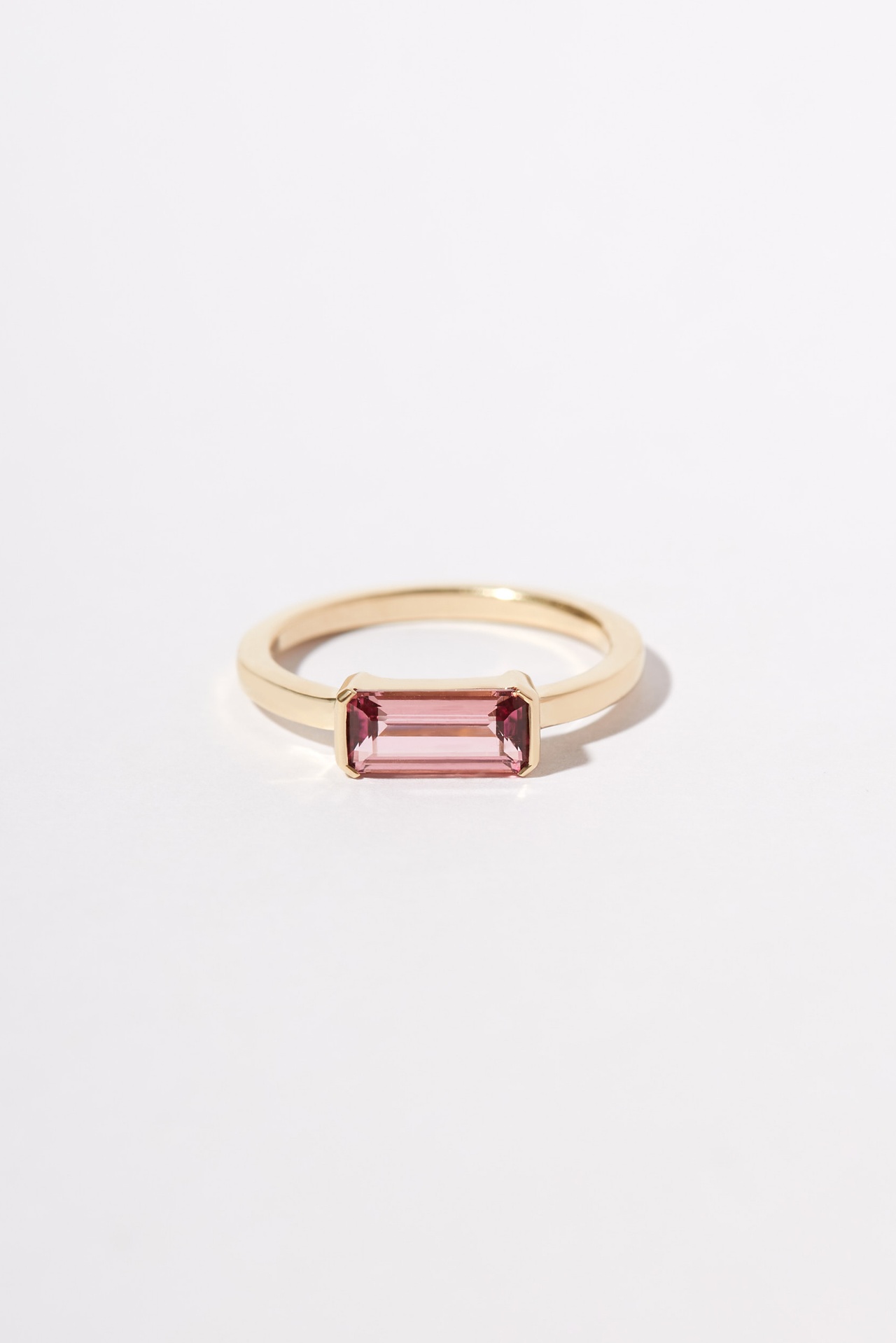 The Zoe ring features a 0.9ct Tourmaline in a modern east-west setting. The stone is set in a half bezel setting giving it a clean and minimalistic look.
